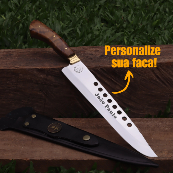 Faca Churrasco Artesanal Personalizada Furada | Aço Inox 10″