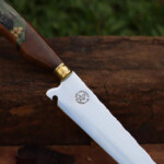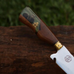 Cabo em Madeira Nobre e resina antibacteriana (cor e textura podem conter pequenas variações por ser feita de maneira artesanal em matéria-prima natural).