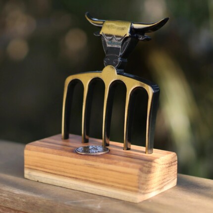 Garfão Bull Ouro Envelhecido com Base em Madeira O preço original era: R$165,00.O preço atual é: R$135,00.