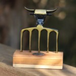 Garfão Bull Ouro Envelhecido com Base em Madeira