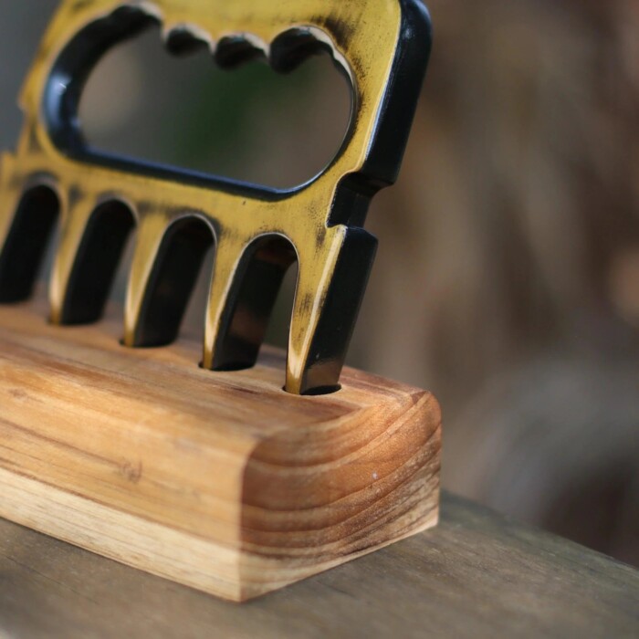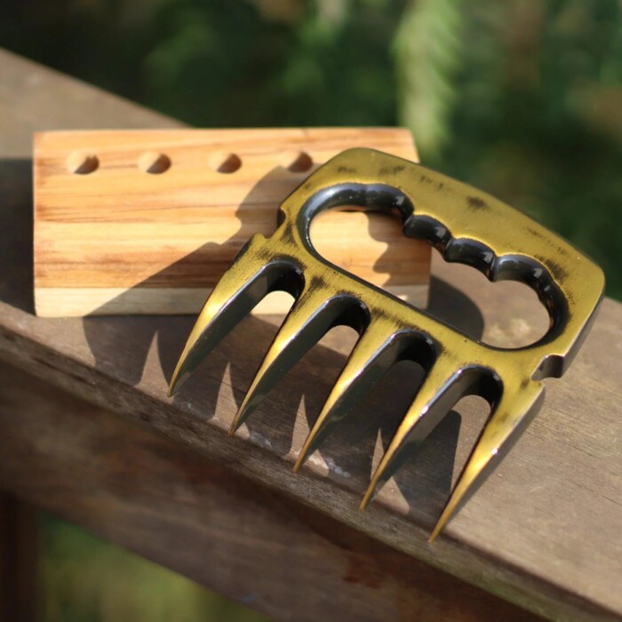 Garra de Urso Ouro Envelhecido com Base em Madeira